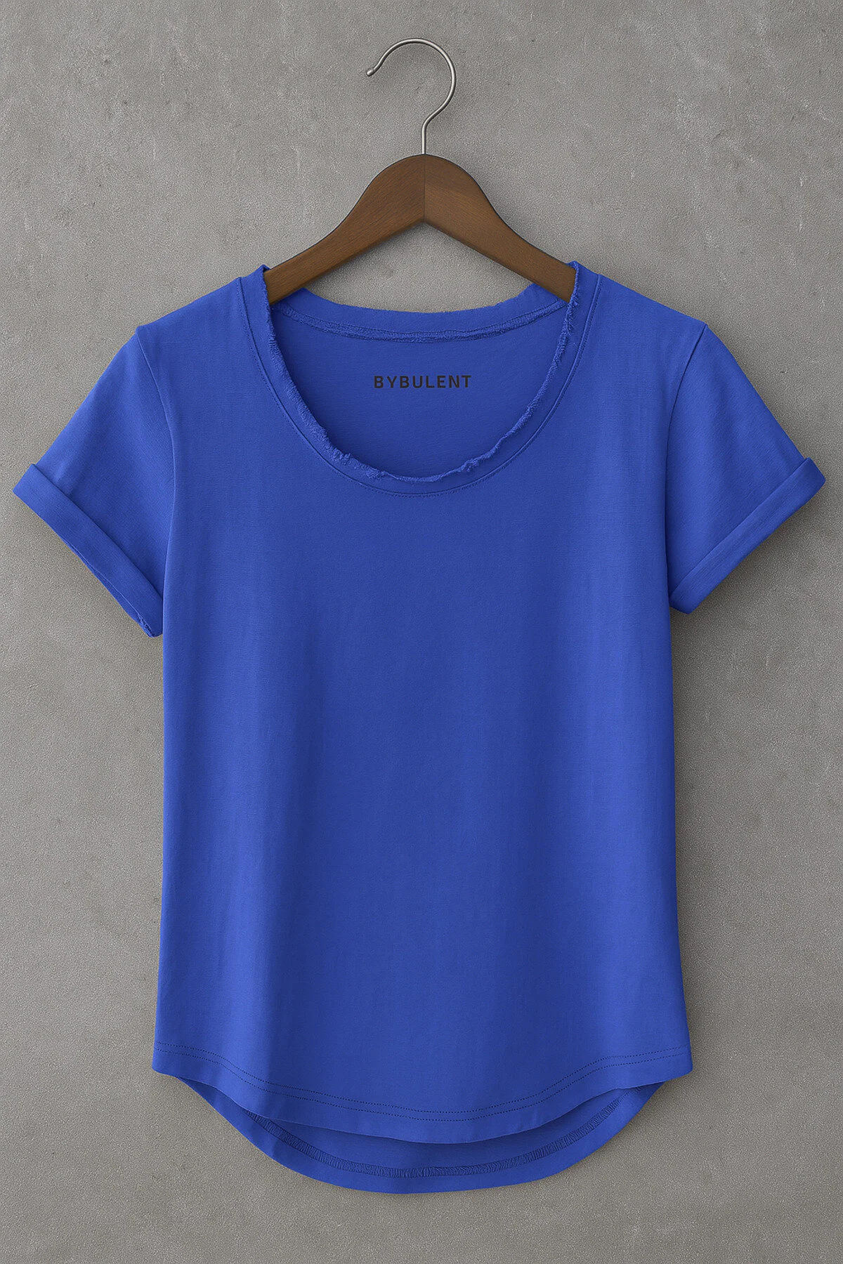 Mavi Erkek Özel Üretim Dar Kesim Geniş Pis Yaka Alt Oval Kesim Slim Tişört T-shirt