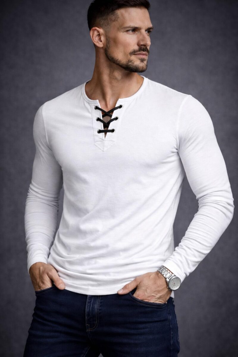 – Günlük kullanım için ideal, rahat ve şık tasarımıyla dikkat çeken geniş yaka tişört.; – Cepsiz sade tasarımı ile minimalist bir görünüm sunar.; – Uzun kollu yapısı sayesinde mevsim geçişlerinde ve serin havalarda konfor sağlar.; – Geniş yaka detayı ile modern ve trend bir stil oluşturur.; – Dört mevsim boyunca rahatlıkla giyilebilen çok yönlü bir parça.; – Düz deseniyle kolayca kombinlenebilir ve zamansız bir şıklık sunar.; – Penye kumaşı, yumuşak dokusuyla gün boyu konforlu bir kullanım vaat eder.; – Orta boy kesimiyle vücuda tam oturan, slim fit kalıbı sayesinde şık bir siluet oluşturur.; – Yetişkin erkekler için özel olarak tasarlanmış, modern ve sofistike bir görünüm sağlar.; – Türkiye’de üretilmiş olup, kalite standartlarına uygun olarak özenle hazırlanmıştır.;