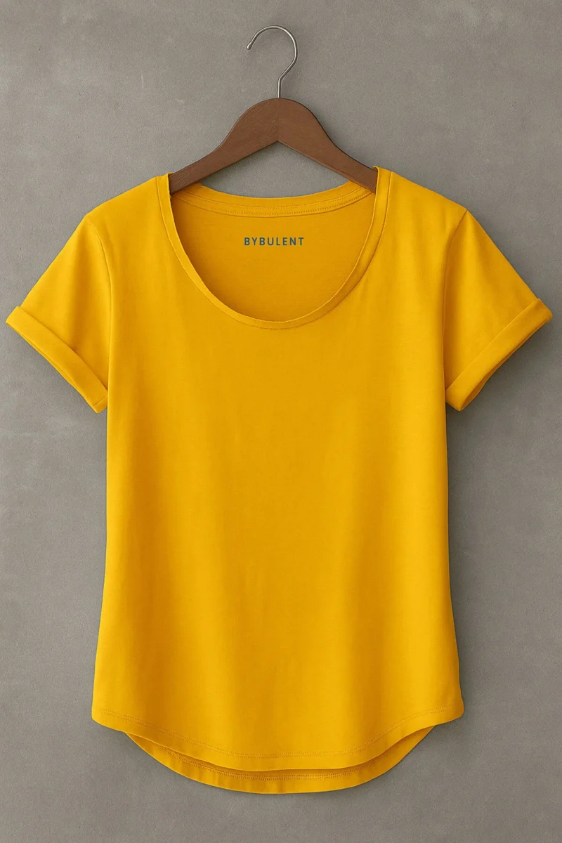 Sarı Erkek Özel Üretim Dar Kesim Geniş Pis Yaka Alt Oval Kesim Slim Tişört T-shirt